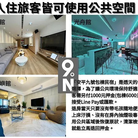 参观台南的旅客可以在九號安平民宿-可包棟-調酒Bar -親子房- 電梯房-電動麻將-停車方便-半露天烤肉度假。